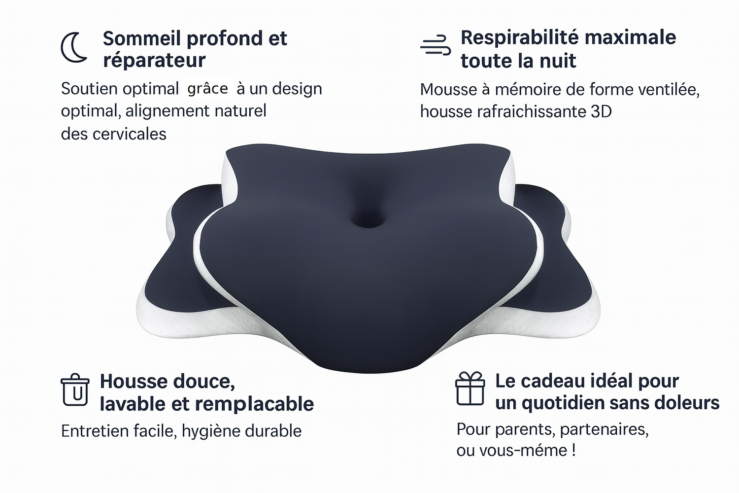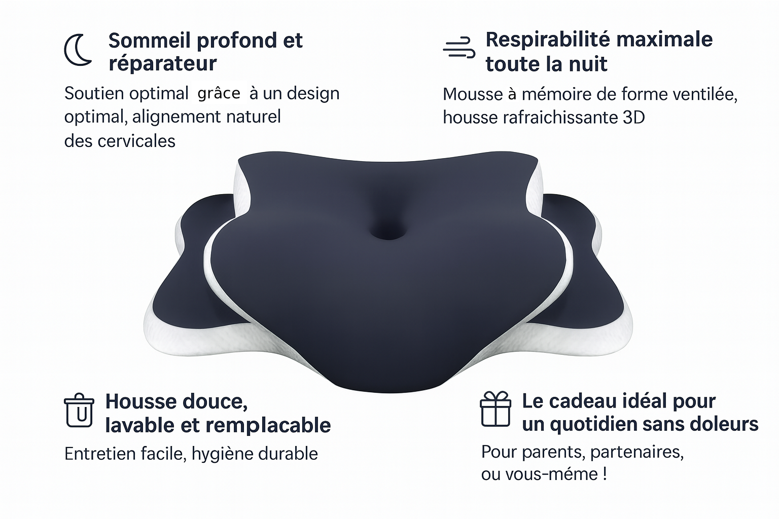 - Design épaissie pour un alignement naturel des cervicales et un soulagement musculaire profond.